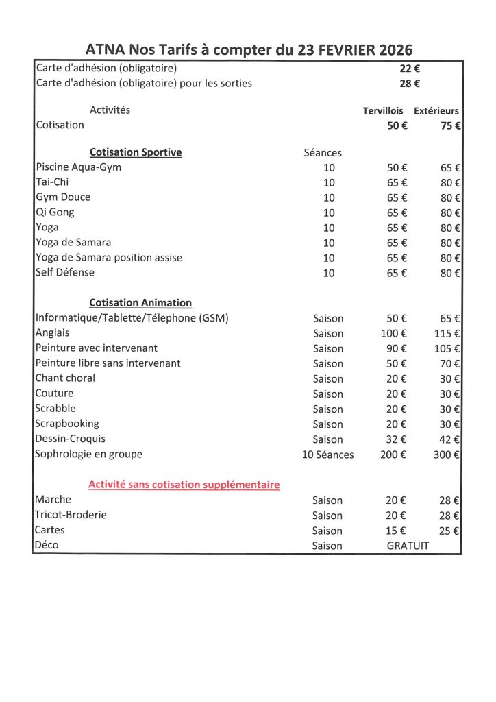 NOS TARIFS A COMPTER DU 23 FEVRIER 2026